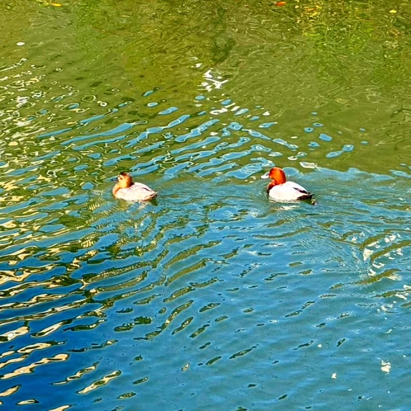 2羽のカモが真間川で仲良く泳いでいました🦆🦆