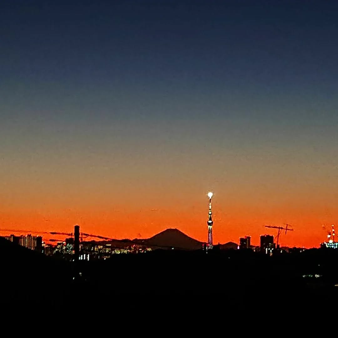 紺色とオレンジを背景に、富士山とスカイツリーがとても綺麗ですね🗻🗼