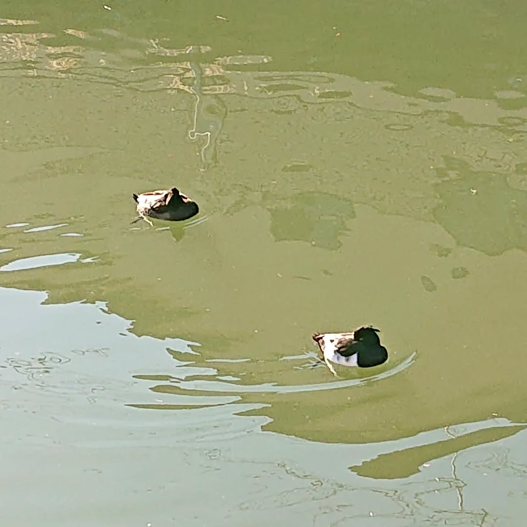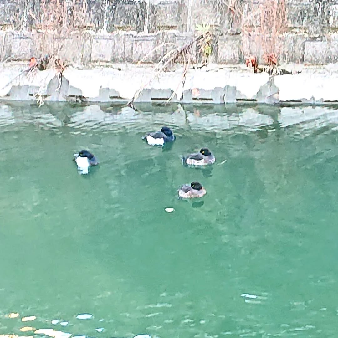 真間川で鴨たちが優雅に泳いでいました🦆.。o○