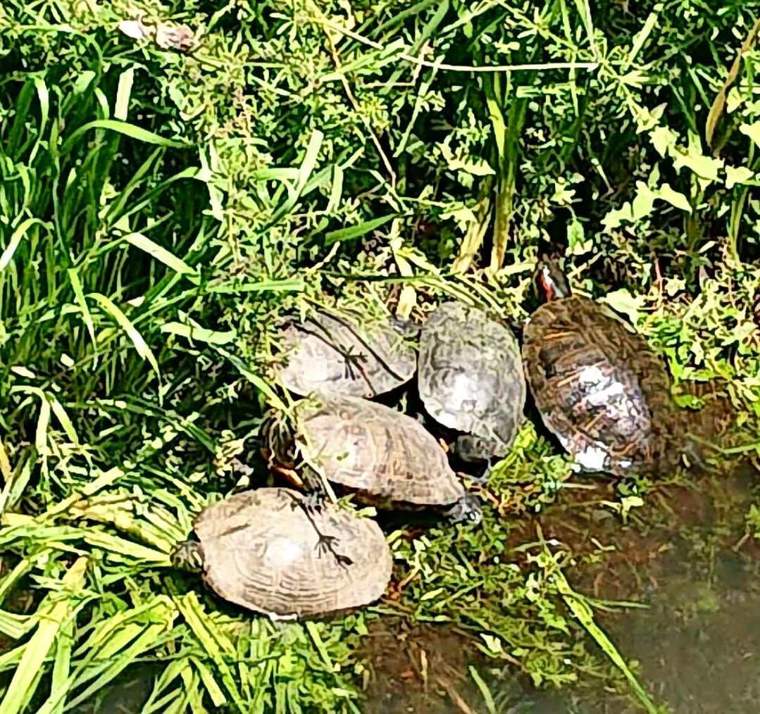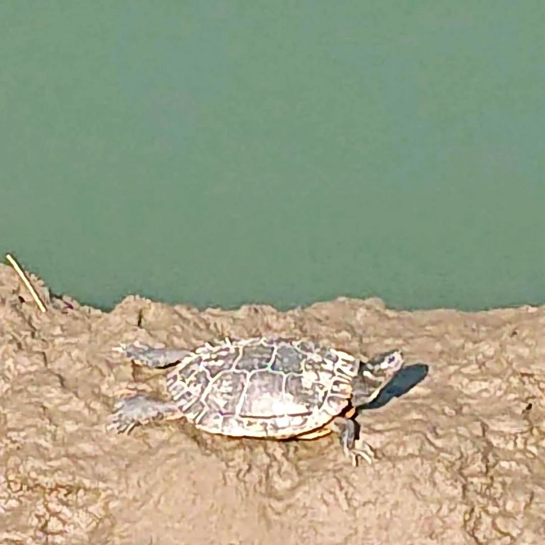 真間川で亀が陽気に包まれのんびりしていました🐢🌅